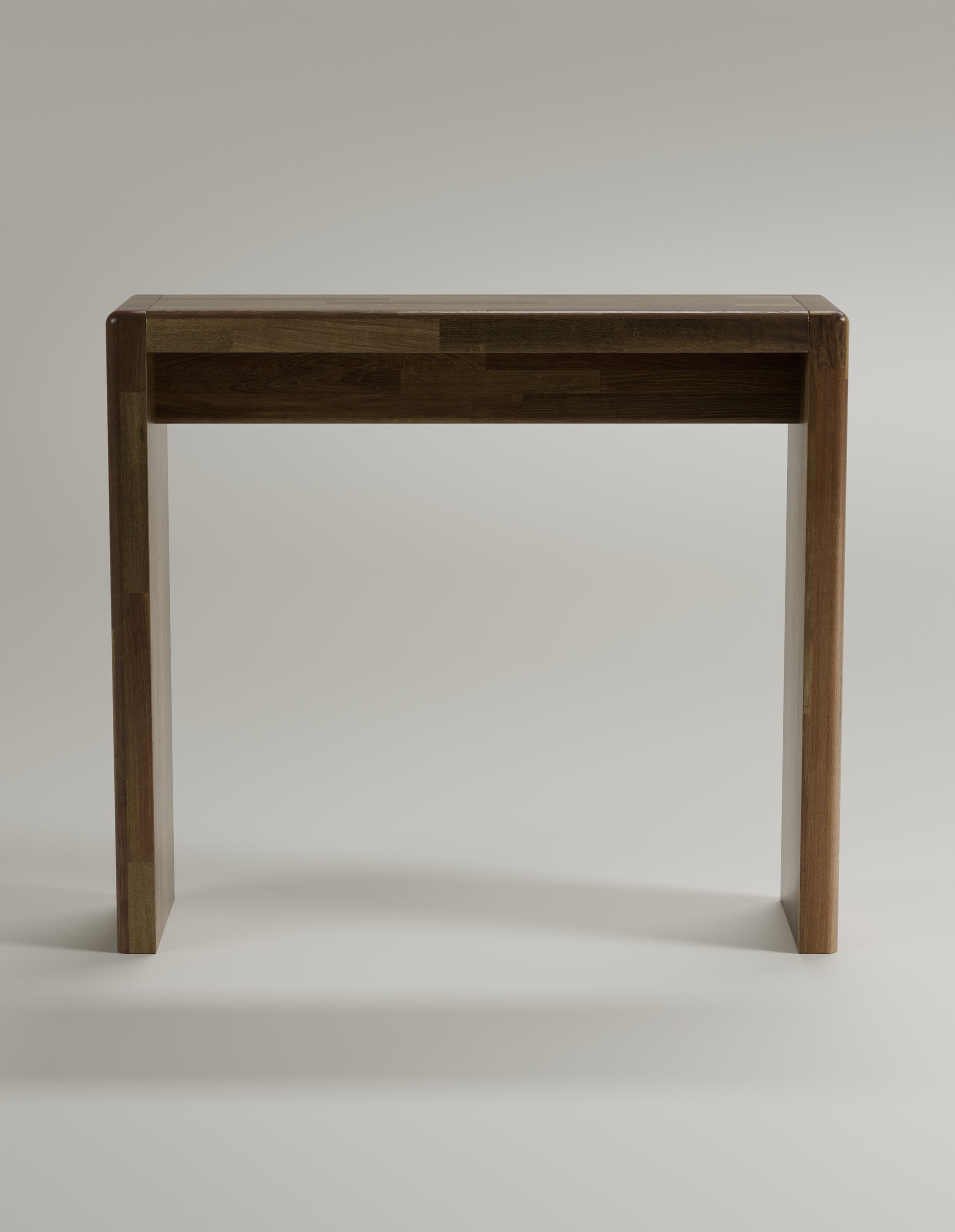 Created for discerning individuals who require compact furniture with elegance. Made from sophisticated Walnut, showcasing a slender design that seamlessly fits narrow areas with graceful utility.